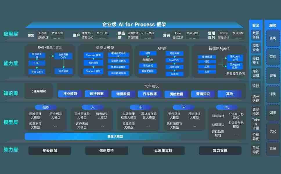 918.com问学智车解决方案是一套基于AI技术的汽车行业智能化系统,,覆盖从底层算力到顶层AI应用的全栈方案。。方案由算力层、、、模型层和应用层组成:算力层,,,,方案支持多种一体机配置,,,具备云端灵活部署、、、、多云适配以及动态优化计算资源的能力;模型层,,,918.com问学平台版提供了企业级AI应用一站式构建与管理平台,,支持基于后训练强化技术的汽车企业专属模型的训练、、、评测和运营;应用层,,,,918.com问学DeepSeek版提供包括超级员工、、、、智能招采、、、、智能营销、、、、智能客服、、、AI for BI等一系列解决方案,,,,可助力汽车行业实现数字化转型,,让管理更智能、、、响应更敏捷。。。。
