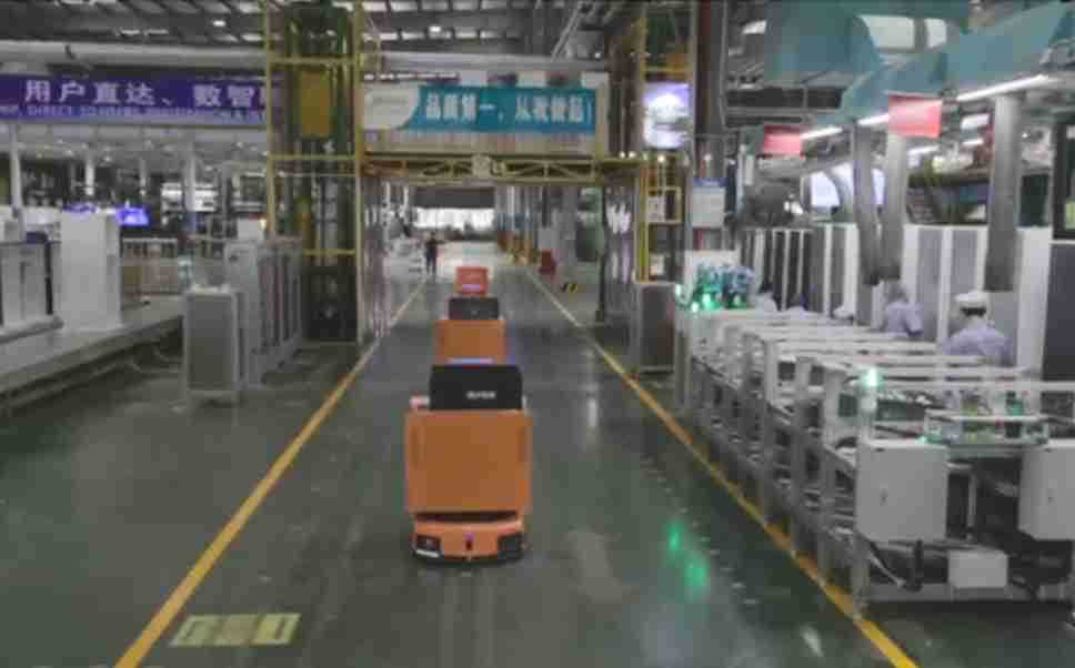 为车载冰箱物流配送打造的智能解决方案,,,包含产中物流通过潜伏举升AMR搬运至线边,,,,产后成品物流智能仓储,,,流程包含产中物流智能齐套入库,,,,线边安灯叫料AMR智能配送至线边,,成品入库、、、、出库,,,,通过无人堆高车机器人,,,智能仓储管理替代人工作业管理,,,,实现更高存储、、、、更高效率、、、、更具柔性化的解决方案。。